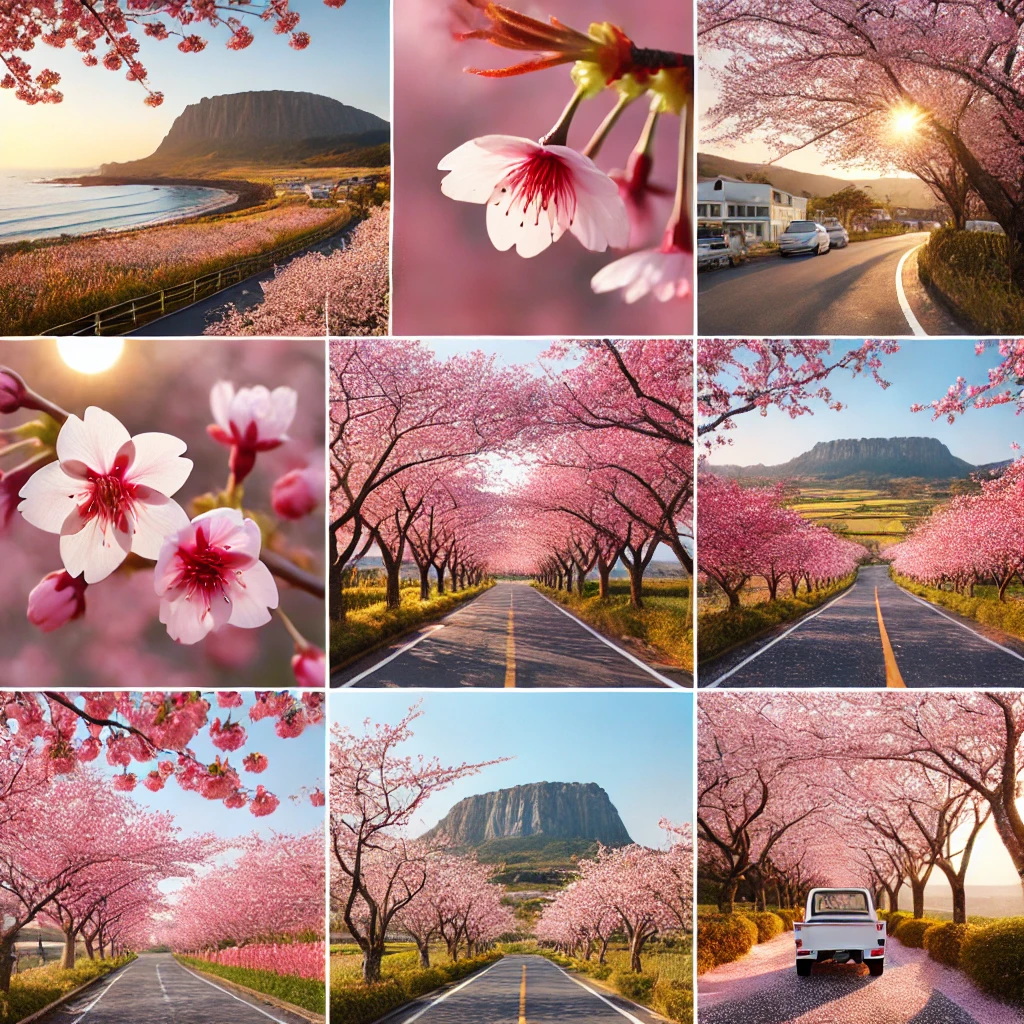 바람에 흩날리는 꽃잎과 제주도의 푸른 바다, 그리고 따스한 햇살이 어우러진 그 순간은 두고두고 기억에 남을 것입니다.